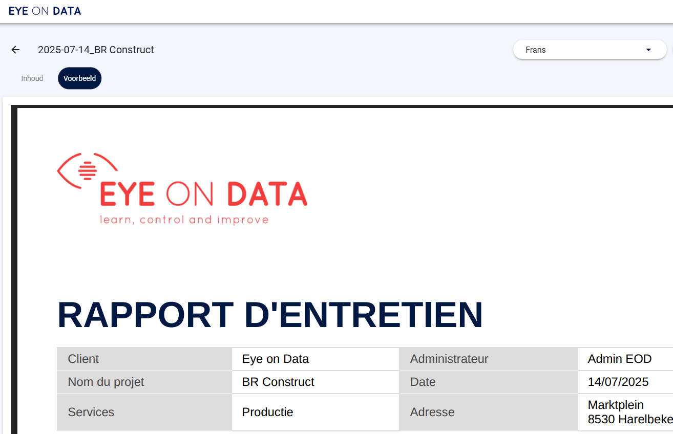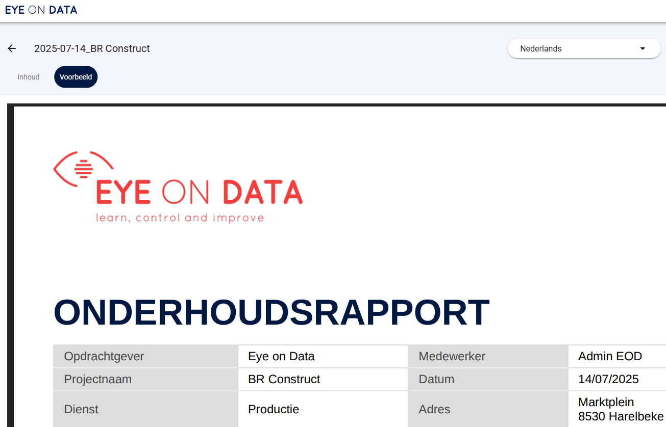 Met de meertalige rapportfunctie van Eye on Data maken we korte metten met die frustraties. Je stelt je werkbonnen of meetformulieren één keer op, en het systeem zorgt voor:
